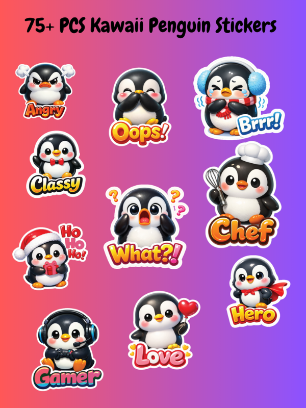 This unique collection features a variety of cute penguin designs in different moods, poses, and fun styles — perfect for adding a playful and trendy touch to your creative projects.