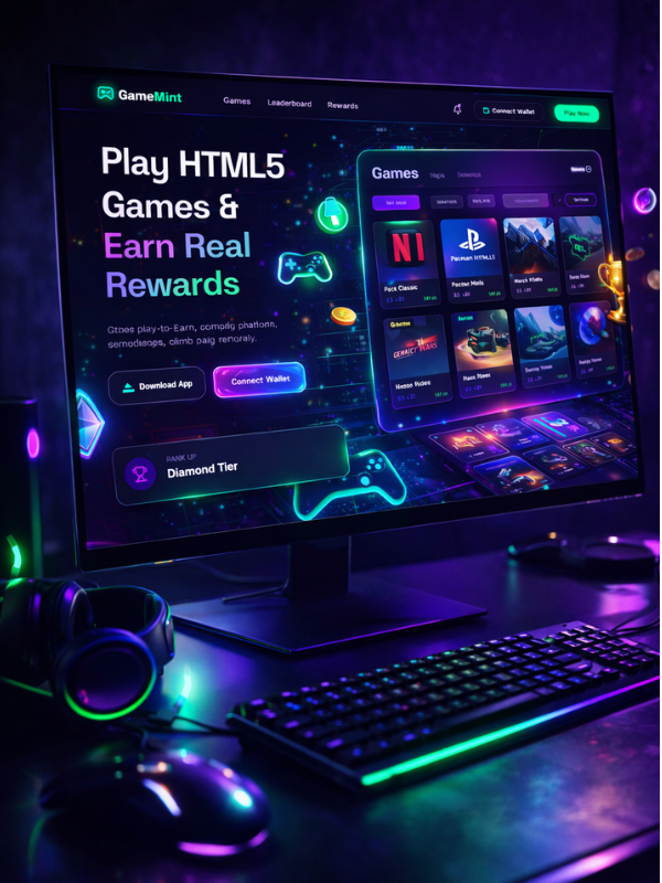 GameMint is a top-tier, futuristic frontend template engineered specifically for Play-to-Earn (P2E) gaming platforms, Web3 ecosystems, Crypto casinos, and HTML5 game portals.
